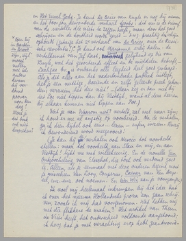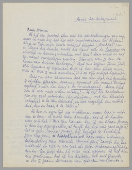 Het vertalen van Malraux boeit me soms, maar blijft me over 't algemeen knap vervelen, ook omdat het gedwongen werk is, dat gauw af moet. Maar vooral omdat het mij belet iets behoorlijks voor mezelf te doen - of ik zou van 's morgens tot 's avonds moeten inktzweeten. - Bep wordt steeds meer een heroïsche journaliste. Zij heeft het in haar hoofd gezet om aan Het Vaderland een kleine fl. 100 's maands te verdienen en gedraagt zich daarnaar met een meer dan prijzenswaardige hardnekkigheid. (Had je nooit gedacht, hè?)