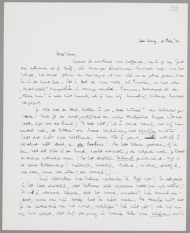 Je stuk over de Ned. letteren is een ‘brok historie’ van beteekenis geworden! Dat je de noodzakelijkheid van zulke strategische lappen niet meer voelt, ligt voor de hand; ik ook niet; het is zuiver toeval, dat wij momenteel met ‘de letteren’ ons brood verdienen, met eigenlijke ambities heeft dat niets meer uitstaande. Maar stel je gerust, het artikel is absoluut niet slecht, en zeer leesbaar! Ik heb Klaus geschreven, of ik hem, met dit stuk in de hand, mocht ontmoeten, de volgende week. Je hoort er daarna natuurlijk van. (Ik heb eergisteren Duhamel geïnterviewd. Dat is de ware letterkundige! Vriendelijk, vaderlijk, stralend, inwendig, geloof ik, zeer dom, maar voor alles: een oompje!)