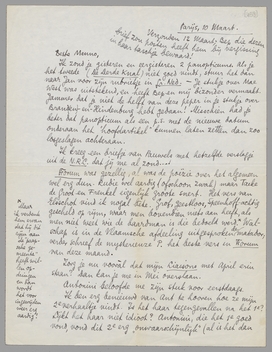 Verzonden 12 Maart; Bep die dezen brief zou posten heeft hem bij vergissing in haar taschje bewaard!
