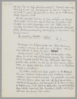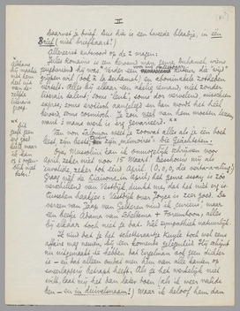 Ik zond je gisteren en eergisteren 2 panopticums. Als je het tweede (De Derde Knal) niet goed vindt, stuur het dan naar Jan voor zijn rubriekje in Gr. Ned. - Je stukje over Mae West was uitstekend, en heeft Bep en mij bizonder vermaakt. Jammer dat je niet de helft van deze peper in je stukje over Brand(en)-en-Hindenburg hebt gedaan! Misschien had je beter dat panopticum als een p.s. met de nieuwe datum onderaan het ‘hoofdartikel’ kunnen laten zetten dan zoo losgeslagen achteraan.