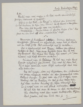 Bep zal morgen, door mij bijgestaan, een ‘interview’ met onzen vliegenier maken en dan persoonlijk naar Holland brengen. Ze gaat voor een 8 à 10 dagen naar Voorburg; tot na Paschen en zal je dus zeker zien. Bel haar anders Dinsdag op, tegen etenstijd bijv. Ze is nogal moe en wil flink uitrusten.