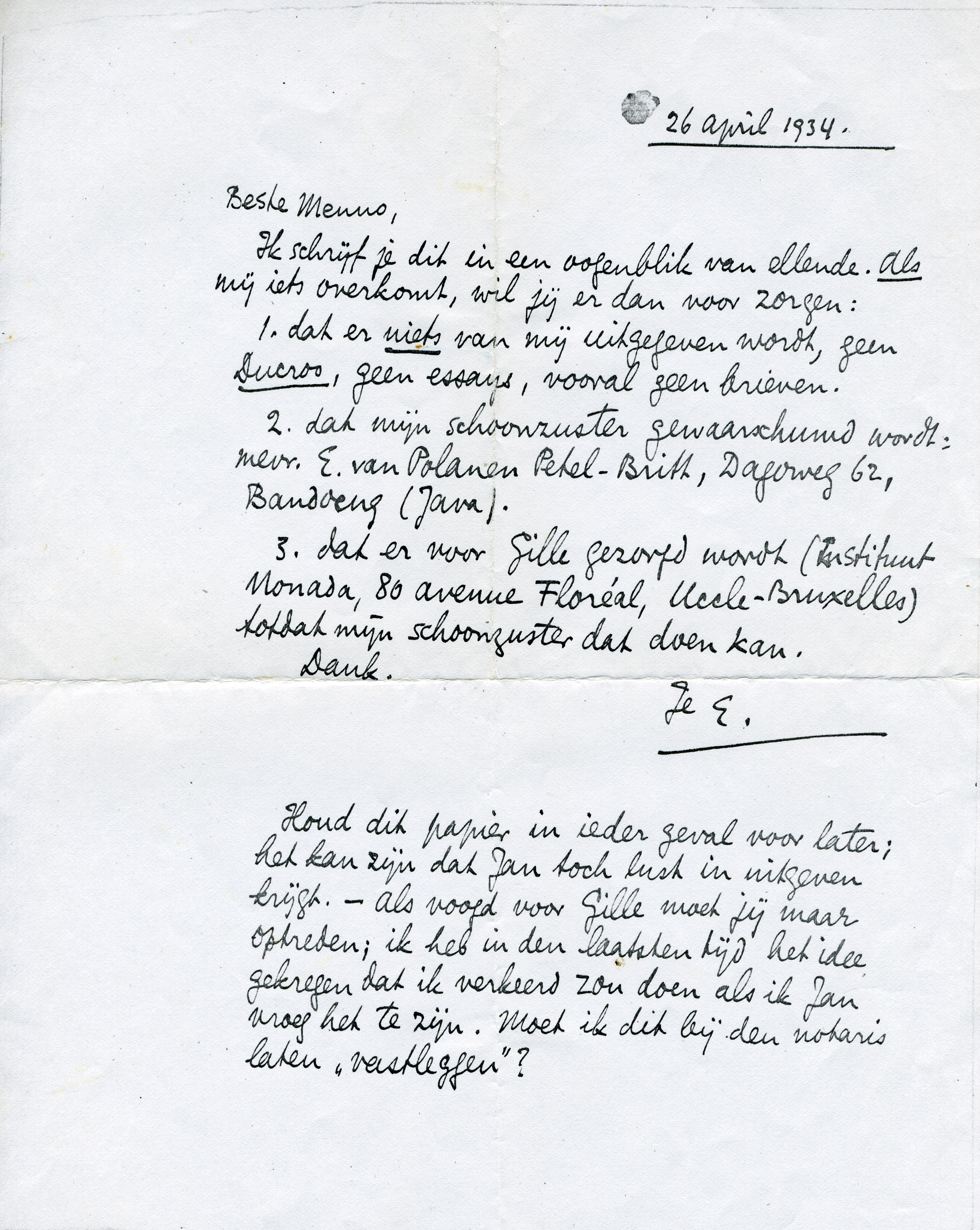 Ik schrijf je dit in een oogenblik van ellende. Als mij iets overkomt, wil jij er dan voor zorgen: