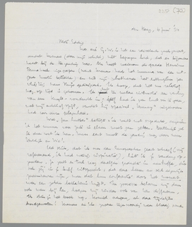 Met die G.W. is het een vervelende zaak geweest, omdat Kramers (door mijn schuld) niet begrepen had, dat er bijzondere haast bij de toezending was. Nu heeft wederom de goede Henricus Pannekoek ingegrepen (want Kramers had het nummer van den uitgever moeten betrekken) en uit zijn schatkamer het exemplaar per vliegtuig naar Parijs gedirigeerd. Ik hoop, dat het nu relatief nog op tijd is gekomen. Ik sluit ter nadere instructie een verslag van een Kuyle-voordracht in; zelf had ik geen lust om te gaan, wat mij achteraf spijt, omdat hij speciaal Dumay uitgekozen had voor deze gelegenheid.
