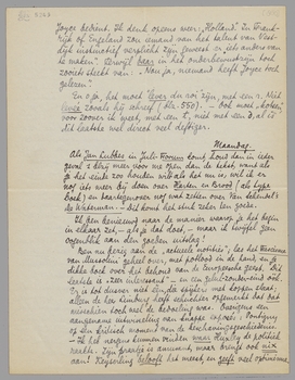 Lees je nog wel even dezen heelen brief door voor de punten waarop ik antwoord hebben moet? - En o ja, mijn stukken verschijnen dus in Juli en Augustus, niet in September. Jammer voor het Europa-nummer, maar daar ontbreek ik dan maar in. Waarom vraag je daarvoor niet brutaalweg buitenlandsche heeren - bijv. Huxley? Klaus Mann heb je zóó bij de hand. En Huizinga!