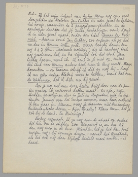 Dadag, nogmaals. Ik ga nog even de straat op, omdat het hier om te stikken zoo benauwd is, en doe dit dan nog even in de bus. Misschien heb je het dan toch morgen nog; bij sommige dingen - vooral het Roodboek, als het ook nog door Nijhoff besteld moet worden - is haast.