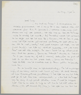 Nu de practijk van de tijdschrift plaatsing. Ik heb ongelukkigerwijs, in de meening dat er veel haast bij was, de eerste bezending al naar Querido gestuurd (aangeteekend)! Het lijkt me dus het beste, dat je er met hem over correspondeert. - Ons Deel van Europa zou ik graag in zijn geheel plaatsen, maar 1o weet ik bij god niet hoe ik er alles in krijg en 2o kan ik het niet alleen beslissen. (Vic zit bovendien bij Jany). Het lijkt me nu toch het best, dat ik het ms. met spoed doorzend aan Vestdijk en Vic, voor hun advies. Het is zeker mogelijk om er een fragment uit te halen, geloof ik, maar liever zou ik alles nemen. Alleen: heeft het voor de boekuitgave misschien niet een goede kant, als we in Forum met nadruk een fragment brengen? Enfin, ik zal vandaag nog Vestdijk bereiken. - Ant wil wat noodig is met pleizier overtypen; zij is alleen nu een beetje ziek (griep). - Het stukje over de spellers sluit ik hierbij in. Stuur het me omgaand terug, na bewerking, want (pro forma) moet het nog naar V & V en dan snel ter zetterij.