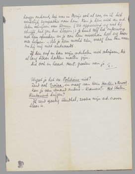 Kan je misschien via Kramers voor me ontdekken waar Gans op het oogenblik zit en wat hij uitvoert? Zag jij hem niet meer? Hij schreef zeer enthousiast over je. Ik schreef hem 2 ×, geen antwoord; wel zond hij mij het Roodboek. Ik ben bang dat hij half en half van honger omkomt, dat was in Parijs ook al zoo, en ik heb werkelijk sympathie voor hem. Kan je hem niet een art. laten schrijven voor Forum (Vic apprecieert erg wat hij schrijft, dat zou dus kloppen): je kunt zelf het onderwerp met hem afmaken en je zou hem misschien heel erg daarmee helpen. - Als je hem mocht zien, vraag hem dan waarom hij mij niet antwoordt.