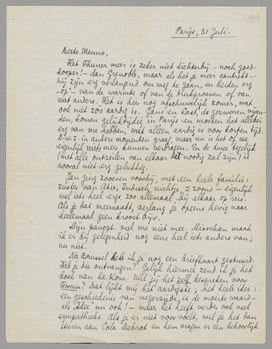 Het Thuner meer is zeker niet dichterbij - noch goedkooper! - dan Grenoble, maar als het je meer aantrekt... Wij zijn erg verlangend om weg te gaan, en beiden erg ‘op’ - van de warmte of van de drukproeven of van wat anders. Het is hier nog afschuwelijk zomer, wat ook niet zóó aardig is. Gans en Last, de gezworen vijanden, komen gelijktijdig in Parijs en moeten het allebei erg van me hebben, wat alleen aardig is voor korten tijd. D.w.z. in andere momenten graag, maar nu is het of we eigenlijk niets meer kunnen verdragen. En de twee tegelijk (met alle ontzeilen van elkaar dat noodig zal zijn) is vooral niet erg gelukkig.