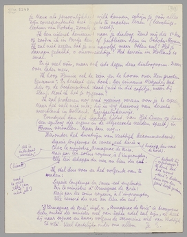 Ik heb bijna niets kunnen doen aan Ducroo en ben afschuwelijk ten achter. Goddank dat je mij die proeven uit handen neemt, meer dan 100 blzn. is het niet en Q. zal ze je zenden. De doorgezonden brief kreeg ik hier: hij was van een idioot die mijn ‘compleet oordeel’ over Dos Passos ‘eens wou hooren’, en ‘geneert u zich niet mij van een illuzie te berooven’. Het tuig denkt dat je voor ze geschapen bent.