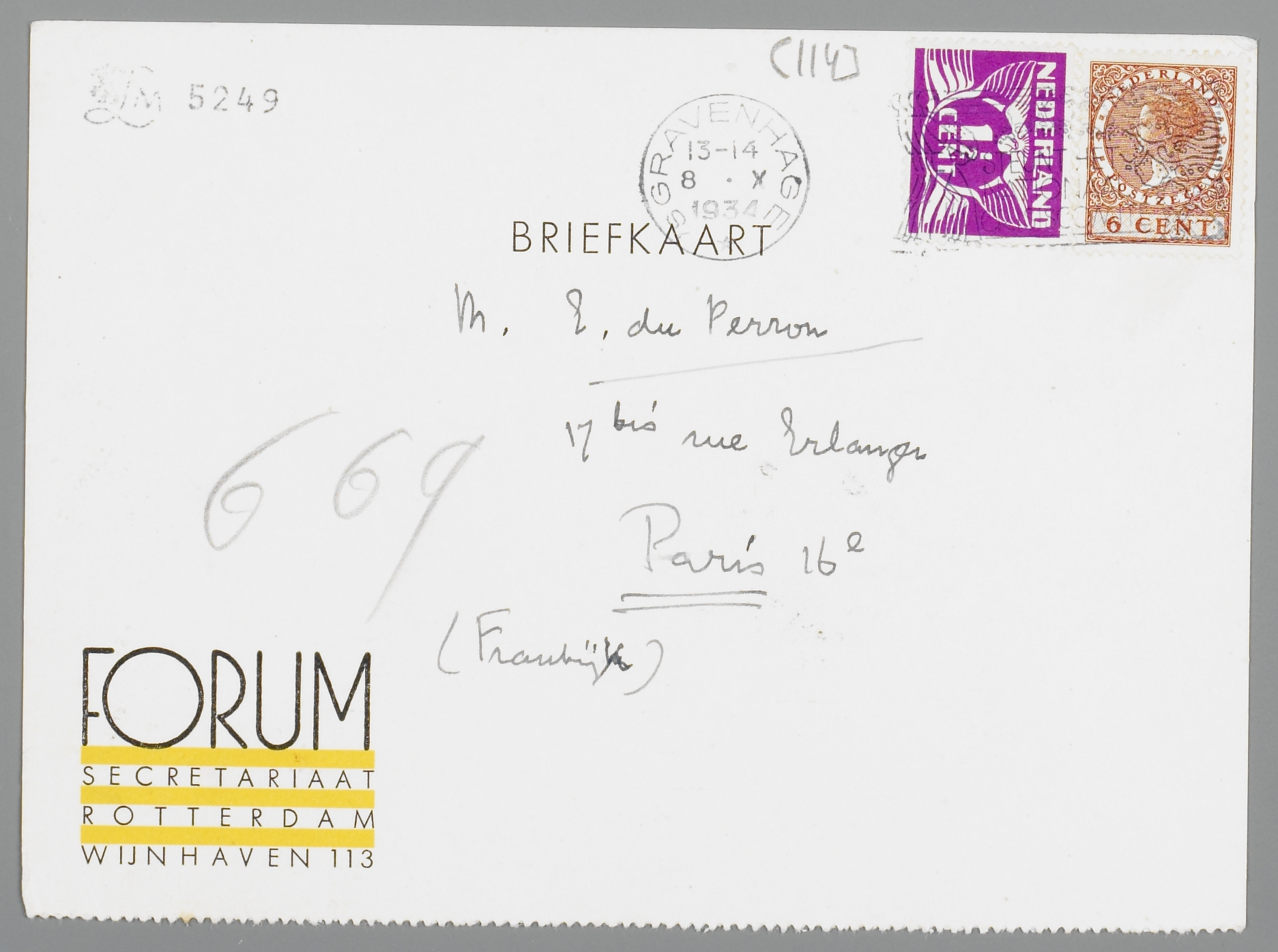 Ik kan dat nummer van Activités nergens vinden. Ant en ik hebben het huis met bezemen gekeerd, maar het komt niet voor den dag. Hoewel ik zeker weet, dat het ergens ligt! Als het nog opdaagt, stuur ik het je direct. Forum April zal ik laten toezenden. Heb je dit dikke Oct. nummer ontvangen?