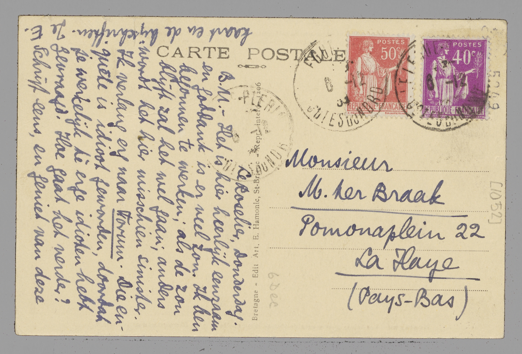 - Het is hier heerlijk eenzaam en goddank is er veel zon. Ik ben begonnen te werken; als de zon blijft zal het wel gaan; anders wordt het hier misschien sinister. Ik verlang erg naar Forum. Die enquête is idioot geworden, doordat je werkelijk tè erge idioten hebt gevraagd. Hoe gaat het verder? Schrijf eens, en geniet van deze kaart en de bijschriften.