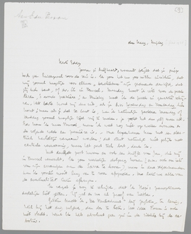 Zooeven je briefkaart, waaruit blijkt dat je griep toch geen hinderpaal voor de reis is. Ik zou het nu zoo willen inrichten, dat wij zooveel mogelijk voor elkaar ‘beschikbaar’ zijn gedurende den tijd, dat jij hier bent, of ev. ik in Brussel. Maandag moet ik iets voor de preek lezen, 's avonds première; en Dinsdag moet ik de preek in quaestie schrijven. Het beste komt mij dus uit, als je b.v. Woensdag en Donderdag hier komt; maar als je dat te laat is, kan ik natuurlijk probeeren Maandag of Dinsdag zoveel mogelijk tijd vrij te maken. Je zoekt het dus zelf maar uit. Ev. kom ik naar Brussel, maar ik weet nog niet op welke avonden er de volgende week een première is. - Onze logeerkamer kan met een electrisch kacheltje verwarmd worden; dat staat natuurlijk niet gelijk met centrale verwarming, maar het gaat toch best, denk ik.