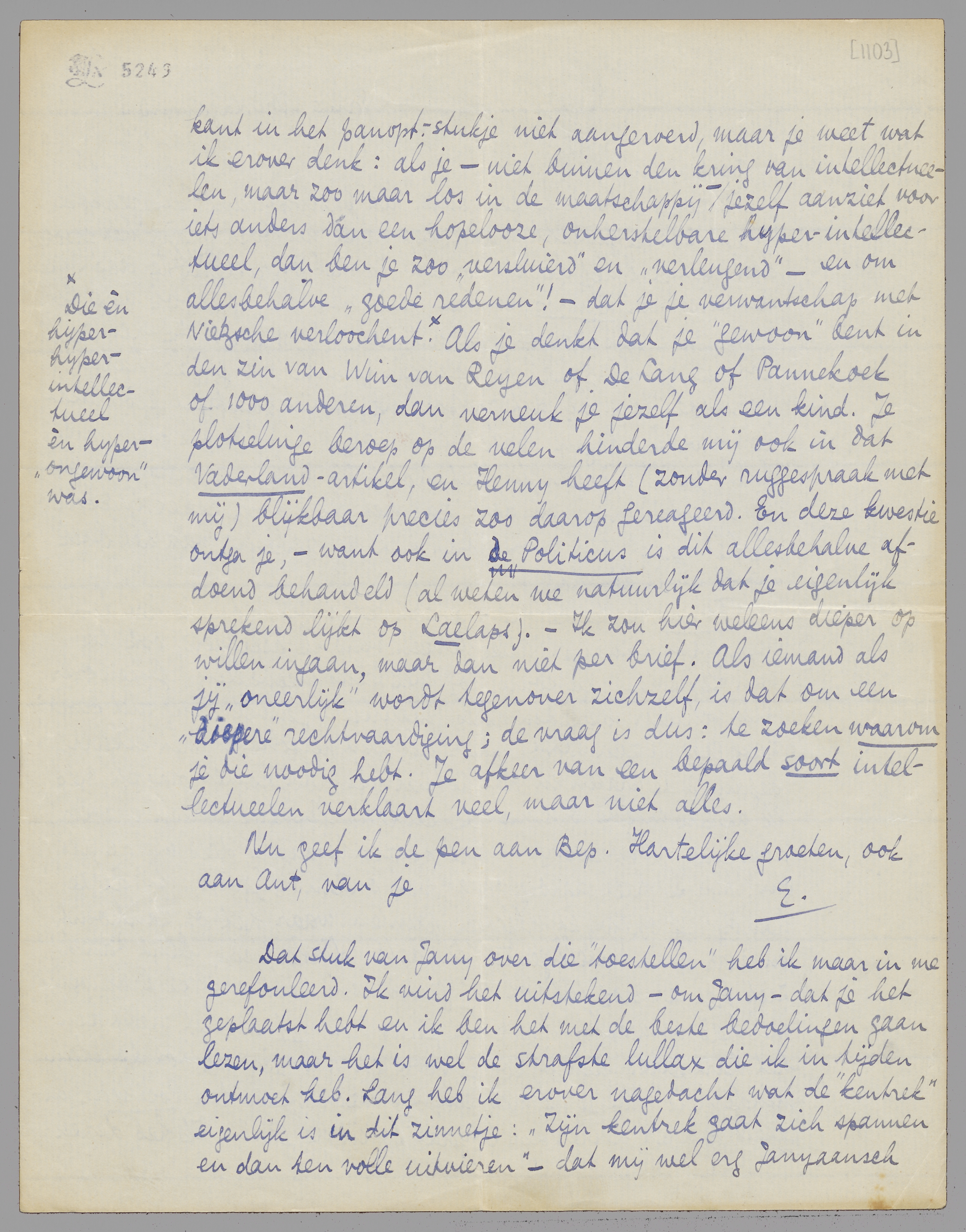 Als Dr. Dumay was je nog een intellectueel; als je dus sindsdien, een ‘zakenman’ bent geworden, zooals E. mij meedeelt, lijkt me dat een lijnrechte beleediging voor Ant. Dit op zichzelf moet je dunkt me, de onhoudbaarheid van die betreurenswaardige redeneering al bewijzen!