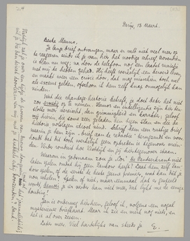 Je lange brief ontvangen, maar er valt niet veel meer op te reageeren sinds ik je van hier het noodige schreef. Bovendien is Slau nu weg; na door de telefoon nog een laatst ruzietje met mij te hebben gehad. Hij heeft werkelijk een beroerd leven, en maakt weer een crisis door, dat mag misschien toch wel als excuus gelden, ofschoon ik hem zelf knap onmogelijk kan vinden.