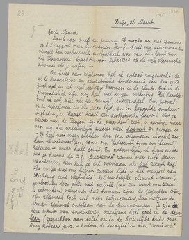 Dank voor brief en proeven. Ik wacht nu met spanning op het rapport over Antwerpen. Jan Gr. heeft mij een-en-ander verteld dat verduiveld antipathiek was van den kant van die Vlamingen (krachtvertoon gebaseerd op de vele vlaamsche abonnés etc); enfin...