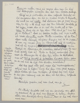 Met Bep gaat alles goed, maar het ‘natuurgebeuren’ schijnt vast te liggen! D.w.z. het kan even goed morgen plaats hebben als over 14 dagen. Je hoort dat wel; houd er dus geen rekening mee en kom, als het kan, volgende Zaterdag.