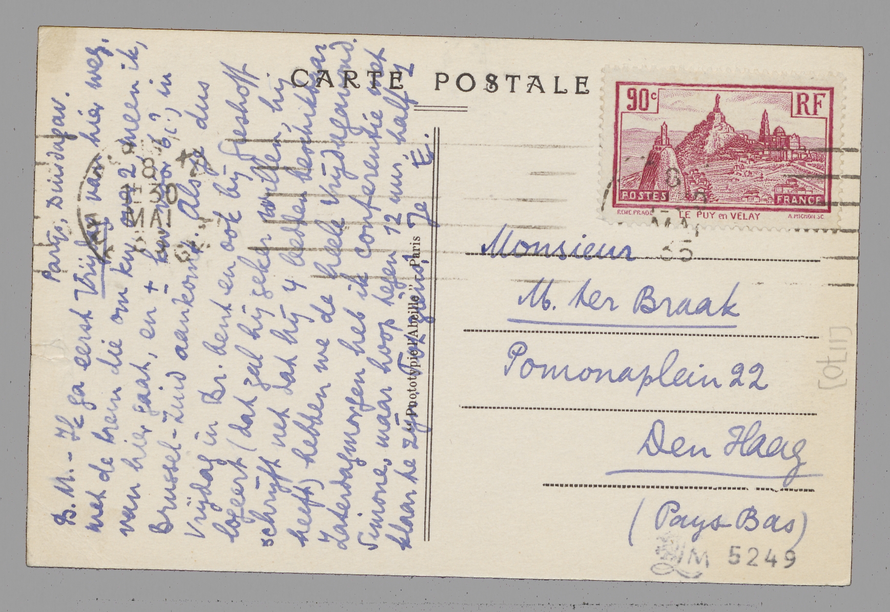 - Ik ga eerst Vrijdag van hier weg, met de trein die om kw. over 2 meen ik, van hier gaat, en ± kw. voor 6 (?) in Brussel-Zuid aankomt. Als je dus Vrijdag in Br. bent en ook bij Greshoff logeert (dat zal hij zeker willen, hij schrijft net dat hij 4 bedden beschikbaar heeft) hebben we de heele Vrijdagavond. Zaterdagmorgen heb ik conferentie met Simone, maar hoop tegen 12 uur, half 1 klaar te zijn.