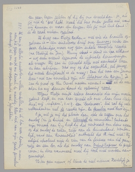 Vandaag kreeg ik je stuk over Gorter. Het zal wel juist zijn wat je zegt, ook de verhouding Gorter-Verwey, en toch, ik zou inderdaad, met alle intelligentie waarover ik beschik, deze manier van proeven willen bestrijden. Overtuigend lijkt me de methode althans allerminst! Maar het boek zelf toch zeer de moeite waard. Je artikel heeft er mij verlangend naar gemaakt: als je me die 2 gevraagde boeken zendt (Otten en Freek van Leeuwen), kan je er dit dan bij doen? Als je er geen haast mee hebt, laat ik alles dan hier liggen tot je komt.