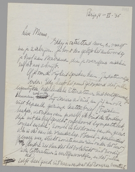 Eddy is ontzettend moe, en vraagt me je te schrijven. Je hoort dan gelijk het antwoord op je brief aan Malraux, die je overigens misschien zelf ook nog schrijft.