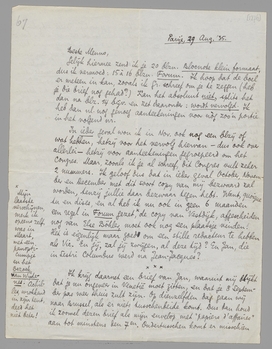 Gelijk hiermee zend ik je 20 blzn. Blocnote klein formaat, dus ik vermoed: 15 à 16 blzn. Forum. Ik hoop dat de boel er meteen in kan, zooals ik Gr. schreef om je te zeggen (heb je die brief nog gehad?) Kan het absoluut niet, splits het dan na blz. 14 bijv. en zet daaronder: wordt vervolgd. Ik heb dan nl. nog genoeg aanteekeningen voor nòg zoo'n portie in het volgend nr.