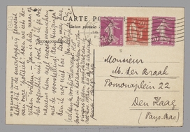 - Ik begon me net ongerust te maken, toen je brief kwam. Tant pis voor het verweer; voor de moeite ook, die ik me gaf. Om er een panopt. van te maken zie ik nu geen kans. Maar het afdoende is: je mededeeling dat Ton Ton niet is, of niet kan zijn; ik dacht dat dat zeker was. Ik voor mij ben zeker dat hij het is, jij trouwens ook, maar ja... - Ik ben verder ijverig bezig met notities over het Congres, maar voel me ook hier erg onzeker, omdat ik niet weet of dit ook tenslotte niet voor de prullemand geschreven wordt. Voor Gr-Ned. zal het wel te veel zijn, en iets anders is er niet. Enfin, we wisten wat we deden toen we Forum lieten opvliegen; maar we zullen even moeten wennen! Ik kan me overigens voorstellen dat je je bekomst van het heele gedoe hebt; Dit is de smeerlapperij geweest van onze ‘politiek’, toen we iets ‘bereiken’ wilden. - -Jan is hier, maar op het oogenblik uit; toch zal ik je ook namens hem veel succes wenschen met de voorstelling! Aan Huizinga ben ik nog niet toe. Later meer dus.