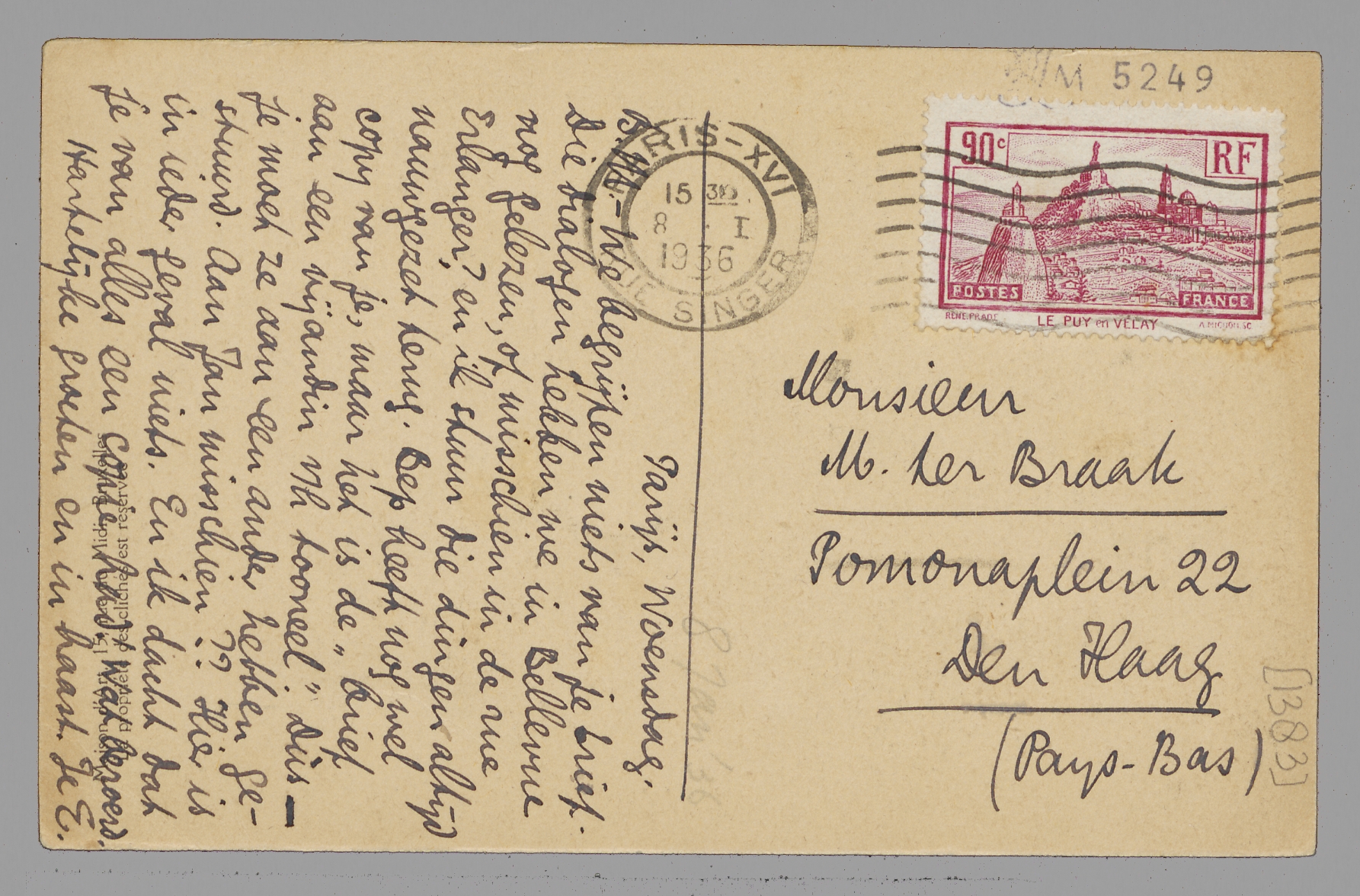 - We begrijpen niets van je brief. Die dialogen hebben we in Bellevue nog gelezen, of misschien in de rue Erlanger? en ik stuur die dingen altijd nauwgezet terug. Bep heeft nog wel copy van je, maar het is de ‘brief aan een vijandin v/h tooneel’. Dùs - je moet ze aan een ander hebben gestuurd. Aan Jan misschien?? Hier is in ieder geval niets. En ik dacht dat je van alles een copie had! Wat beroerd.