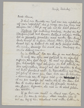 Ik walg van alles wat politiek is, en eigenlijk ongeveer van heel Parijs. Ik voel me doodop, kan geen behoorlijke regel schrijven en heb allerlei andere rotgevoelens, terwijl ook dat wachten op bericht uit Indië fnuikend werkt. In tegenstelling met Varangot geloof ik soms geen haar meer aan de literatuur - tenminste aan de mijne niet - en dat ik me pas rustiger zal voelen als ik een baan heb. Aan de andere kant is nu die fransche vertaling van Ducroo begonnen, die niet in de steek gelaten kan worden.