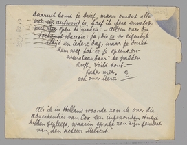 Daarnet komt je brief, maar omdat alles erin eig. antwoord is, hoef ik deze envelop niet meer open te maken. - Alleen over die toekomst-obsessie: ja, die is er eigenlijk altijd en iedere dag, maar je drukt hem weg tot-ie je opeens ‘onweerstaanbaar’ te pakken heeft. Voilà tout. - Later meer, ook over Merz.