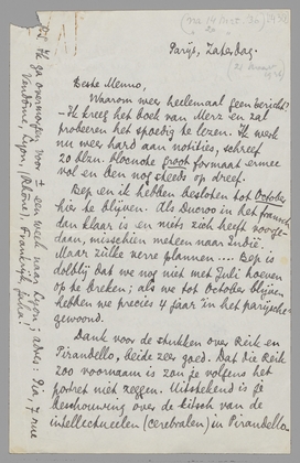 Ik schrijf vandaag een gesprek op dat ik met Caffi (en Chiaro) had over Nietzsche. - Maar ik krijg te veel van deze notities om alles in Gr.Ned. te loozen. Zou ik niet een cahier van de V.Bl. ermee kunnen vullen?