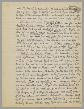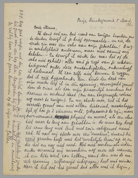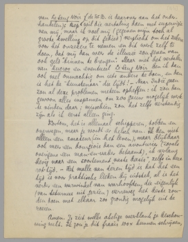 Amen. Je ziet welke akelige weerklank je beschouwing wekt. Ik zou je dit fraais 100 × kunnen schrijven, zelfs zonder beschouwingen van jouw kant. Maar je brief heeft mij veel goed gedaan en ik heb hem met trots vertoond aan mijn vrouw Bep. Als jij, die in vele opzichten zooveel rustiger, althans evenwichtiger bent dan ik, en die materieel de meest vaste basis heeft van al mijn vrienden, je zóó voelt - dan ben ik wel geëxcuseerd, vooral na de aardigheid die mij overkomen is, en die ik natuurlijk au fond toch nog lang niet ‘verwerkt’ heb.