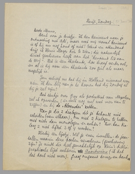 Dank voor je briefje. Ik ben benieuwd naar je ontmoeting met Adé, maar wat mij vooral benieuwt is of hij nu nog komt of niet! Want en attendant krijg ik Henri Mayer hier te zien; die natuurlijk direct geschreven heeft aan het ‘benoemd lid van de Mij.’ Het is een theetante, hoe braaf verder ook, en al is hij voor een theetante zoo geil als maar mogelijk is.