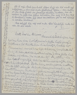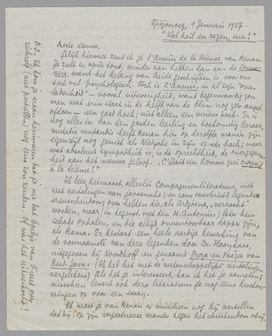 Ingesloten papiertje is een citaat van Unamuno dat ik tusschen ‘jeugdpapieren’ vond. Ik las het Eddy voor zonder auteur te noemen, en hij zei: ‘is dat van Menno?’! Heeft E. geschreven dat ik nu weer getikte copie kan leveren? Gegeven dat ik hier geen café Murat heb om op mijn knie te schrijven. Dag, B.