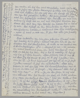 Die Oranjefeesten kan ik me van hier voorstellen en verzoenen me weer een beetje ermee dat ik hier zit. Stel Stols overigens je ideetje van dat Bruidsbed voor; het is alleszins de moeite waard, en misschien zou Bernard het van zijn dubbelganger best verdragen. Maar ik doe, geloof ik zoo langzamerhand, Stols onrecht. Niet dat hij niet meteen prins-gemaal zou worden, als het hem werd aangeboden, maar zóó'n obsessie om de grijns van Gaston Doumergue te slaan zou hij, geloof ik, toch niet hebben; hij zou nog eens één keertje die glimlach van zijn bek getrokken hebben. Die prins-gemaal-in-spe moet een behoorlijke imbeciel zijn, dat kàn nu niet meer anders; hij heeft dat nu wel met 1000 foto's bewezen pardessus den aard van zijn baantje en hoezeer dat er ook al op wees. Dat Nijhoff en Van Duinkerken in dezen weer manifesteeren moesten, is teekenend voor déze intelligenties, - maar ik word er moe van, te zien hoe alles zoo prachtig uitkomt.