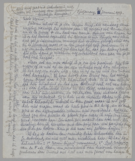 Gisteren schreef ik je een langen brief, die vandaag eerst wegging, vanwege het nieuwe jaar. Ik verzond ook Renan, Avenir de la Science + een boek van Barrès. Patrice van Renan, dat ik op het laatste ogenblik bij Histoire de mes Pensées van Alain deed, zal je interesseeren vanwege het verloren geloof; sluit aan bij de Souvenirs, maar is in den jeugd-tijd zelf geschreven. Er is nog een ander document uit dien tijd bij, dat zijn belang heeft. Dit alles komt je misschien nog uitstekend van pas, nu je je boek toch ‘herziet’.
