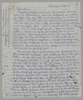Ditmaal gaat deze brief per gewone post. Ik stuurde hùn het antwoord per luchtpost - daar hadden ze bons voor ingesloten! - en aan Jany ook; ben benieuwd of hij hun de ‘toestemming’ zal geven, d.w.z. de ‘moreele verantwoording’ voor deze laffe knoeierij op zich zal nemen, maar ik betwijfel het zeer. Misschien doen de Lubbesjes, als ze al te ver zijn met hun tooneelvoorbereidinkjes, het dan wel zonder. Ga dan vooral zelf het spektakel aanzien, met tekstboek in de hand, en geef dan het verslag dat ze verdienen. Van mijn brief mag je natuurlijk, wat mij betreft, gerust gebruik maken. Ik vraag me af of hier ook heel of half N.S.B.-igheid achter zit, maar Coen is aan de orde van den dag en hier in Indië hebben ze met alle geweld zijn botjes willen terug vinden en allerlei gebeente laten analyseeren! - een ex-landarchivaris, de heer Bloys van Treslong Prins, heeft gezworen dat hij op een bepaald uur van een bepaalde dag Coen's karkas had teruggevonden: dit karkas geanalyseerd, bleek het een legkaart te zijn uit een massagraf vervaardigd en bestaande uit 74 (meen ik) verschillende ingredienten. Is het niet om je te bepissje?