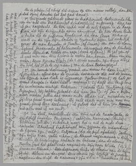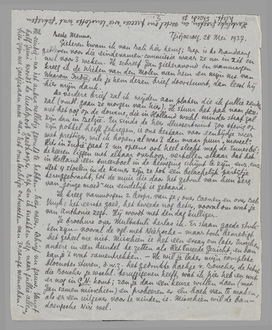 Ik eindig - na het andere velletje gevuld te hebben - hier weer. Schrijf nu gauw. Vanaf half Juni wordt de luchtpost goedkooper. Bep en ik snakken eig. naar jullie allen, hier zijn we zoetjesaan moe van het omslachtige ontmoeten van 3e rangs-menschen!