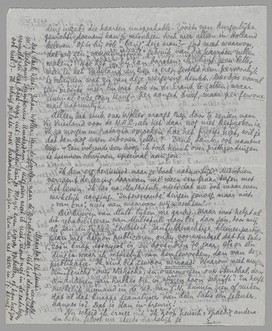 8o. Wil je Jan vragen waarom ik de Mult.-bloemlezing van S.v. Praag (Pegasus!) niet krijg, terwijl die al zoo lang uit is? Of kan jij mij zelf een ex. sturen? Het stuk van Saks over 't ontslag van Mult. is laag en stom, maar dat het in Gr. Ned. is komen te staan vind ik gewoon beneden alles. En dan nog wel in vervolgen! (iets wat voor andere dingen volstrekt niet mocht, volgens Jan). 't Is walgelijk.
