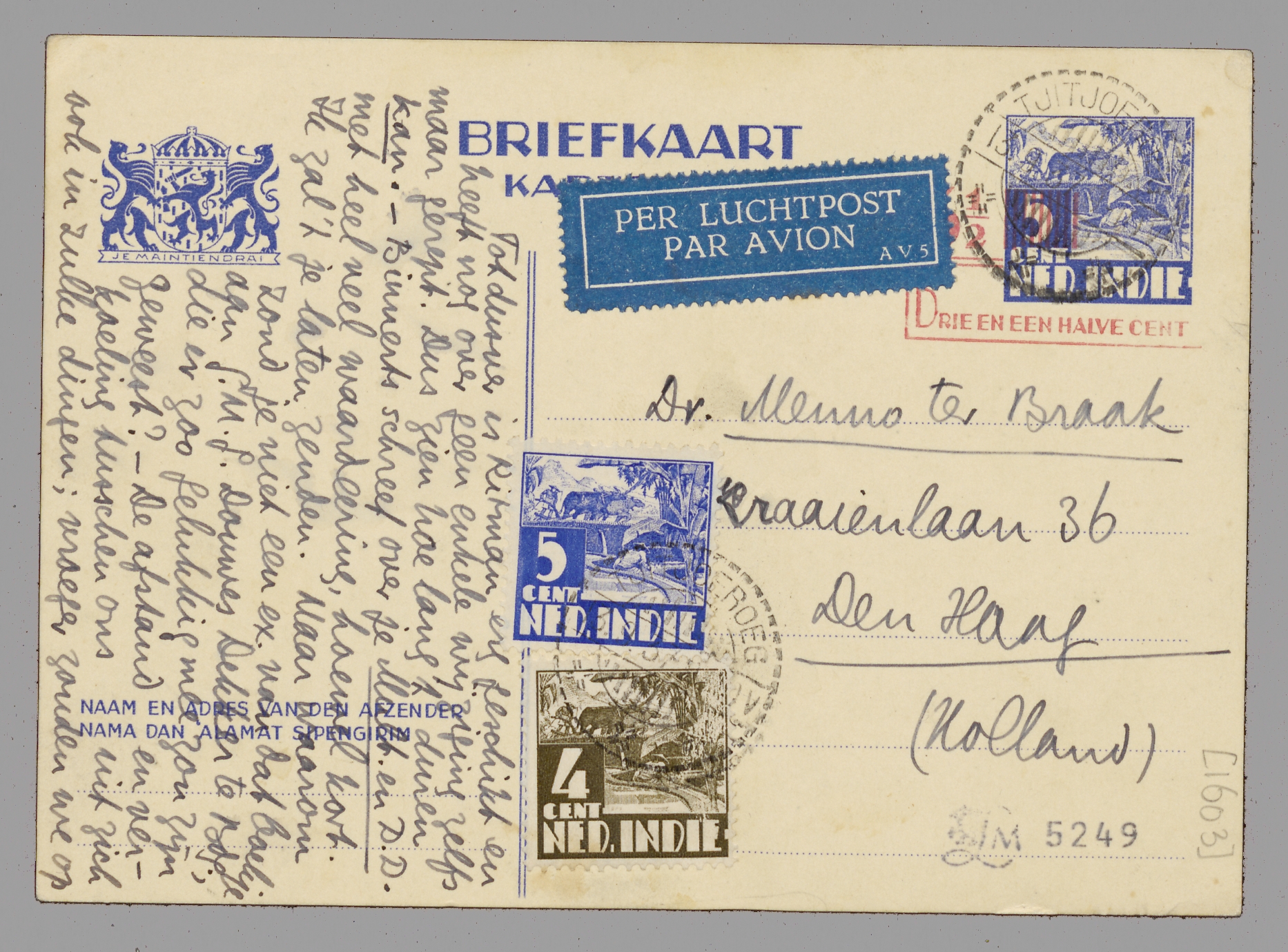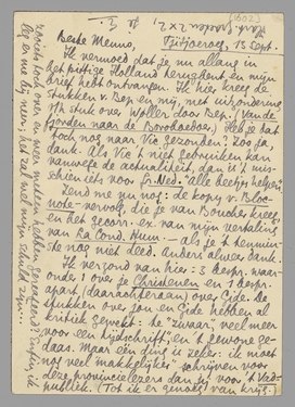 Ik vermoed dat je nu allang in het pittige Holland terugbent en mijn brief hebt ontvangen. Ik hier kreeg de stukken v. Bep en mij, met uitzondering v/h stuk over Wøller door Bep. (Van de fjorden naar de Boroboedoer.) Heb je dat toch nog naar Vic gezonden? Zoo ja, dank. Als Vic 't niet gebruiken kan vanwege de actualiteit, dan is 't misschien iets voor Gr.Ned. ‘Alle beetjes helpen’.