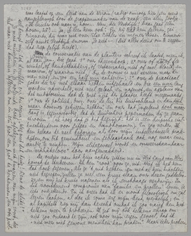 Vertel weer eens wat van dingen in Holland. Die stukken van me stuur ik je liever persoonlijk, dan weet ik zeker dat je ze krijgt. Na dat over Gide is er niets meer verschenen. Ik schreef 2 dialogen over het detective-verhaal en werkte de oude op; dus 3 tesamen. Maar voor de krant is het al veel te moeilijk. Misschien een extract eruit? Schrijf gewoon hierheen, de post stuurt de corresp. verder. Als we in Garoet zijn, geef ik nader adres op. Tot spoedig, en steeds hartelijk je E.(Groeten onder de gades.)