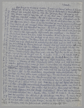 Die Idenburg, Dir. v. Onderwijs, waarover hierboven sprake was, is zoo weinig ambtenaar, dat iedereen erover spreekt. Hij hoort tot de Oxford-Groep, maar maakt den indruk van een eerlijke, ronde vent te zijn (niet in schijn, maar echt). Ik ontmoette hem nog maar 2 of 3 maal. Is het een broer van den Idenburg die door jou en Van Crevel op de Kul-club gepest werd over God's woord? In ieder geval is deze zoon van den oud G.G. Maar ik meen me te herinneren dat hij mij zei eenig kind te zijn. Hoe zit dat? Dat deze zelf jullie man zou zijn lijkt me niet waarschijnlijk.