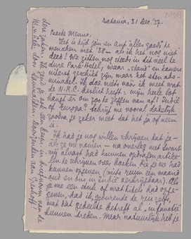 Het is tijd jou en Ant ‘alles goeds’ te wenschen met '38 - als ik het nog niet deed! We zitten nog steeds in dit veel te dure Park-Hotel, waar ‘stand’ en kamers uiterst geschikt zijn, maar het eten abominabel. Ik doe niets vóór ik weet wat de N.R.C. beslist heeft: mijn heele lot hangt er om zoo te zeggen van af! Indië of Europa? Schrijf me vooral dadelijk zoodra je zeker weet dat het ja of neen is.