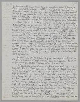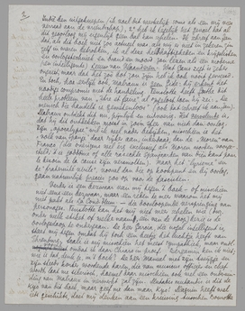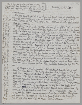 Het stuk van mevr. Romein heeft me vermaakt. Dus ook al oneerlijk! Het is alleraardigst om te zien hoe de liefde voor een mede-marxist al deze ‘historici’ oneerlijk maakt. Ik zal op dit alles antwoorden in mijn artikel over Saks, dat een definitieve afrekening zal zijn en waarin ik allerlei aardigs zal vertellen, o.a. dit - waar ik door D.D. op gebracht ben - dat Multatuli met zijn ‘ravijn’ nooit een ravijn, bergkloof of afgrond bedoeld heeft, dat dit idee absoluut komt van zijn interpreteerders en in geen enkel opzicht met zijn beschrijving van dat ‘ravijn’ klopt! Een woordenboek van 1858 geeft trouwens voor ‘ravijn’: gracht, en Van Dale, nu nog: holle weg, vóór bergkloof. Dit bewijst niets voor de waarheid van de Havelaar, maar wel voor de rustelooze neiging van al die lieden om Multatuli te laten liegen. - Verder heb ik nog wat dokumentjes gevonden op het Archief: o.a. zijn trouwacte (zeer belachelijk), wat briefjes voor Scherius geschreven in Menado, een compleet Jaarverslag v. 1849 in Menado en nog wat snippers uit Ambon. Alles bijeen niet veel waard, maar geschikt als ‘aanvullend artikel’, omdat men zoo weinig van dezen tijd weet. Maar dat publiceer ik niet in mijn stuk over Saks natuurlijk; dat wordt een apart verhaaltje, hetzij voor Gr. Ned., hetzij voor Koloniale Studiën hier.