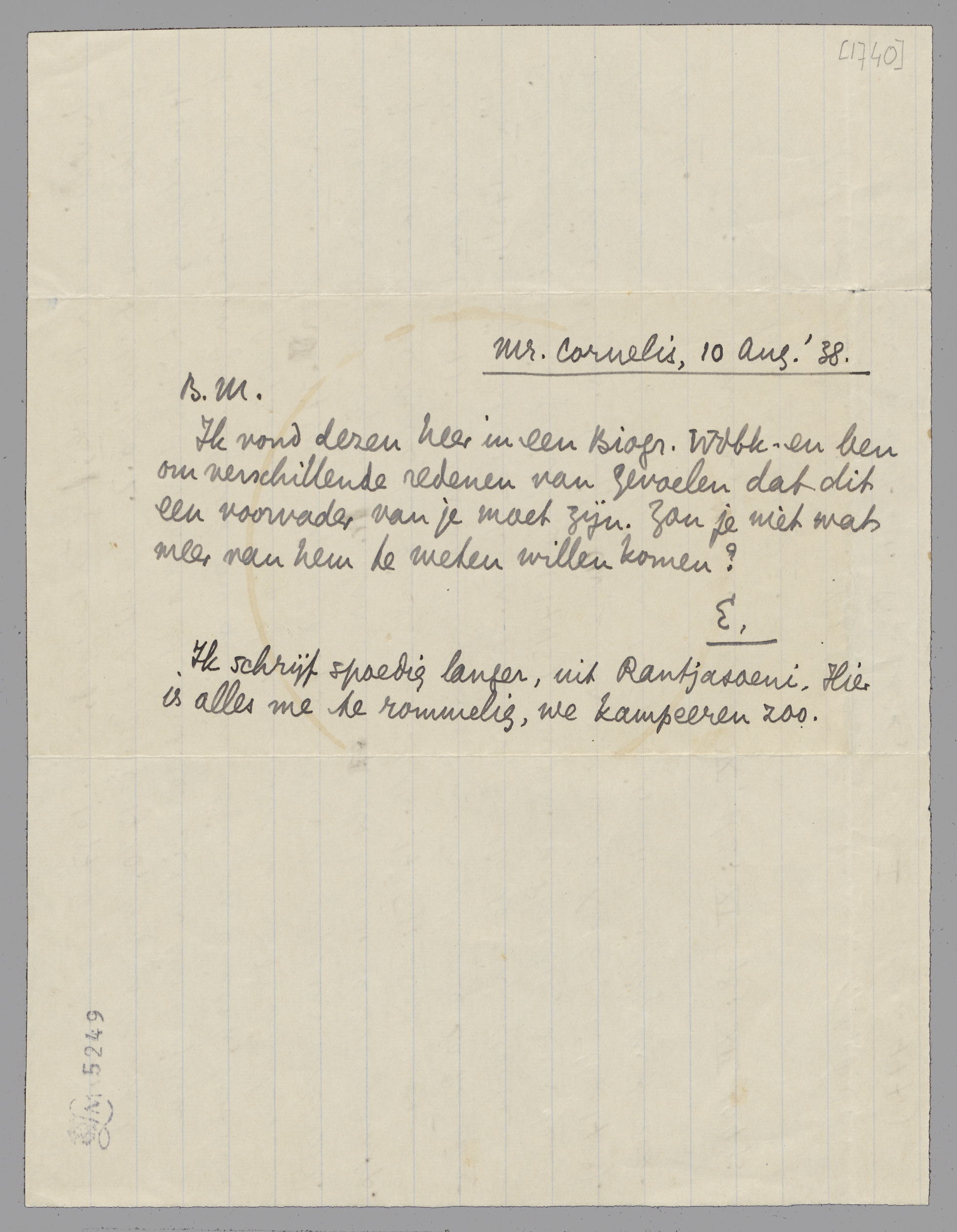 Ik schrijf spoedig langer, uit Rantjasoeni. Hier is alles me te rommelig, we kampeeren zoo.