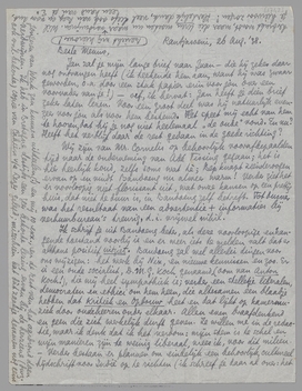 Mooi; schrijf me wat over Holland; je terugvinden van Den Haag; hoe je je voelt; hoe je nu ‘tegenover de dingen’ staat. Je bent lang niet uitgebreid genoeg daarover.