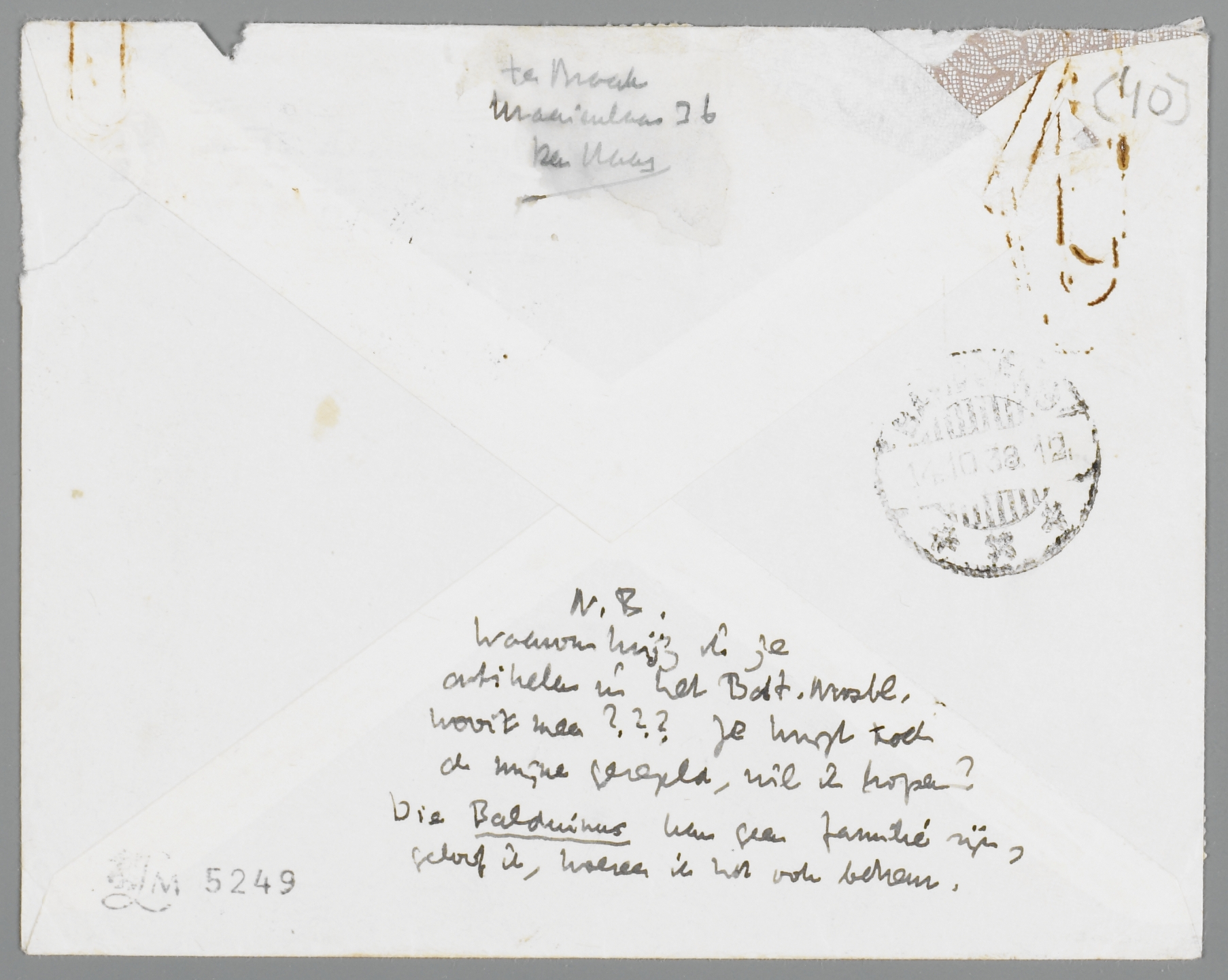 Van Kampen schreef mij, nog eer ik er werk van maakte, dat jij hem al bericht had gezonden over de vernietiging van de oplaag Uren. Ik heb 10 ex. uit den ‘boedel’ gered; heeft hij er jou ook 10 gezonden? De verkoop stond vrijwel stil, maar ik betreur toch deze instamperij, want het boekje is heusch nog zeer leesbaar. Eenige dierbare jongeren krijgen nu van mij successievelijk de geredde zeldzame exemplaren.