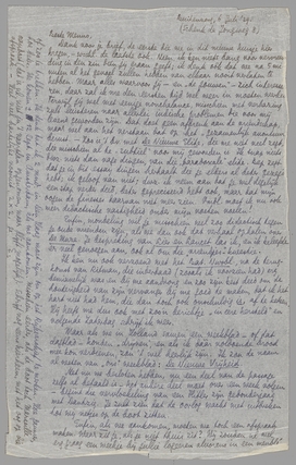 Enfin, als we aankomen, moeten we toch een afspraak maken. Waar zit je, als je niet thuis zit? Wij zouden nl. wel erg graag een weekje bij jullie logeeren alvorens in een meublé of zoo te trekken. Ik denk dat ik 2 mnd. in Den Haag moet zijn om op het Rijksarchief te werken. Hoe gauwer, hoe beter. We komen ± 12 Sept. in Amsterdam, àls we aankomen. Misschien eerder, als de boot toch Marseille aandoet (dat is nl. niet in 't vaarplan opgenomen, maar blijft mogelijk). Schrijf nog eens hierheen, met het oog op die afspraak. - Heel veel hartelijks vooruit, 2 × 2