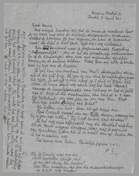 Ik zal hem een overdruk van Mul's faciëngalerij sturen, als ik die zelf krijg. Ik zou er een stuk of wat krijgen, maar zie niets. Je schrijft erover alsof je 't stuk al gezien had, edoch ik arme denk nog steeds dat het heele Elsevier's vanwege de huwelijksemotie van Tielrooy in het ei gebleven is. Krijg ik die overdrukken, dan zend ik er 2 naar Het Vaderland: een voor jou en een voor Hein. Heeft Hein zijn portie Luizen ook gehad?