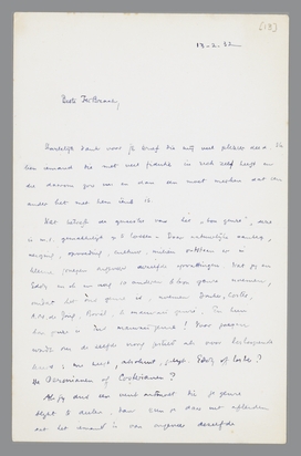 Hartelijk dank voor je brief die mij veel plezier deed. Ik ben iemand die niet veel fidutie in zich zelf heeft en die daarom zoo nu en dan eens moet merken dat een ander het met hem ééns is.