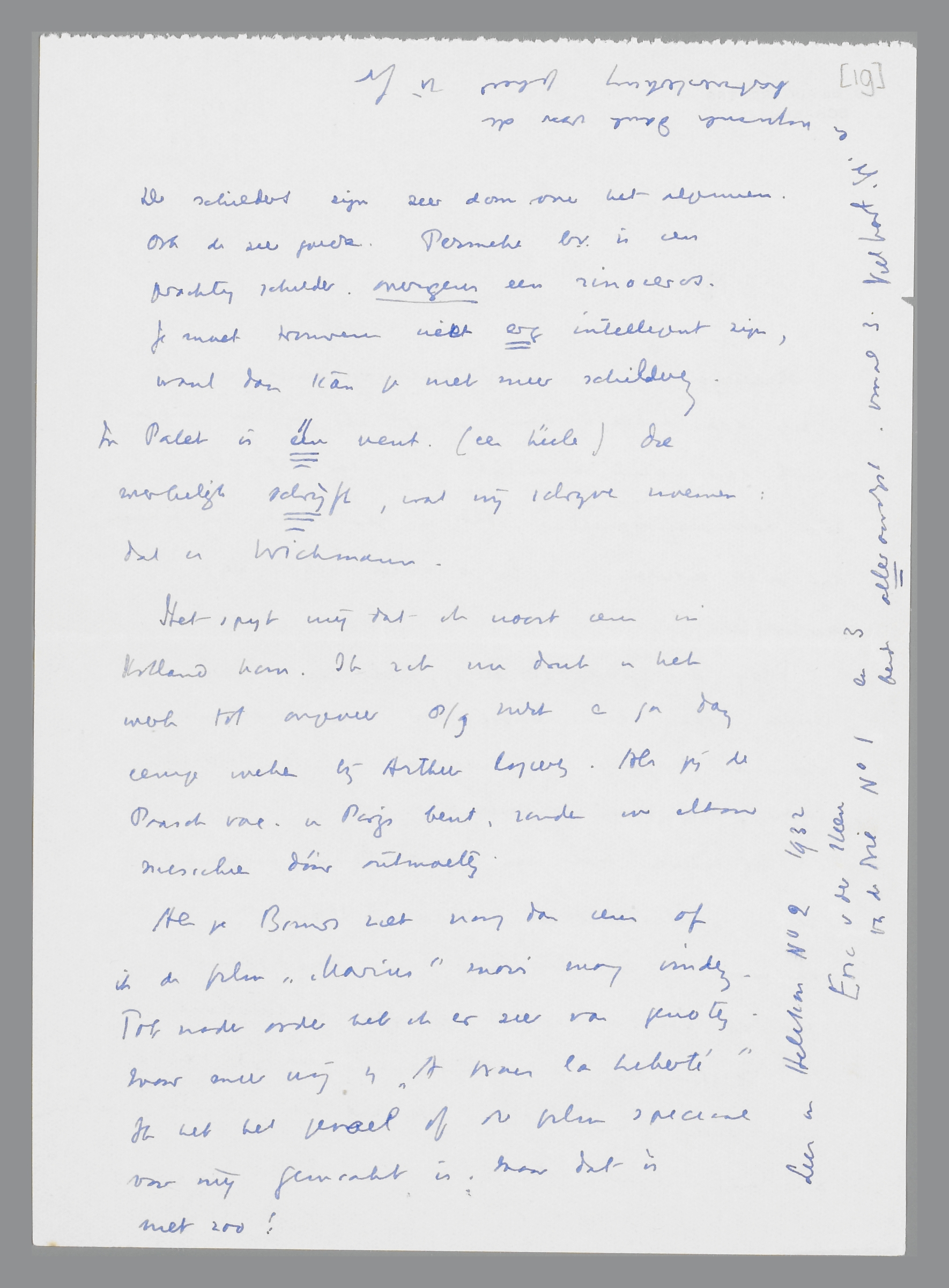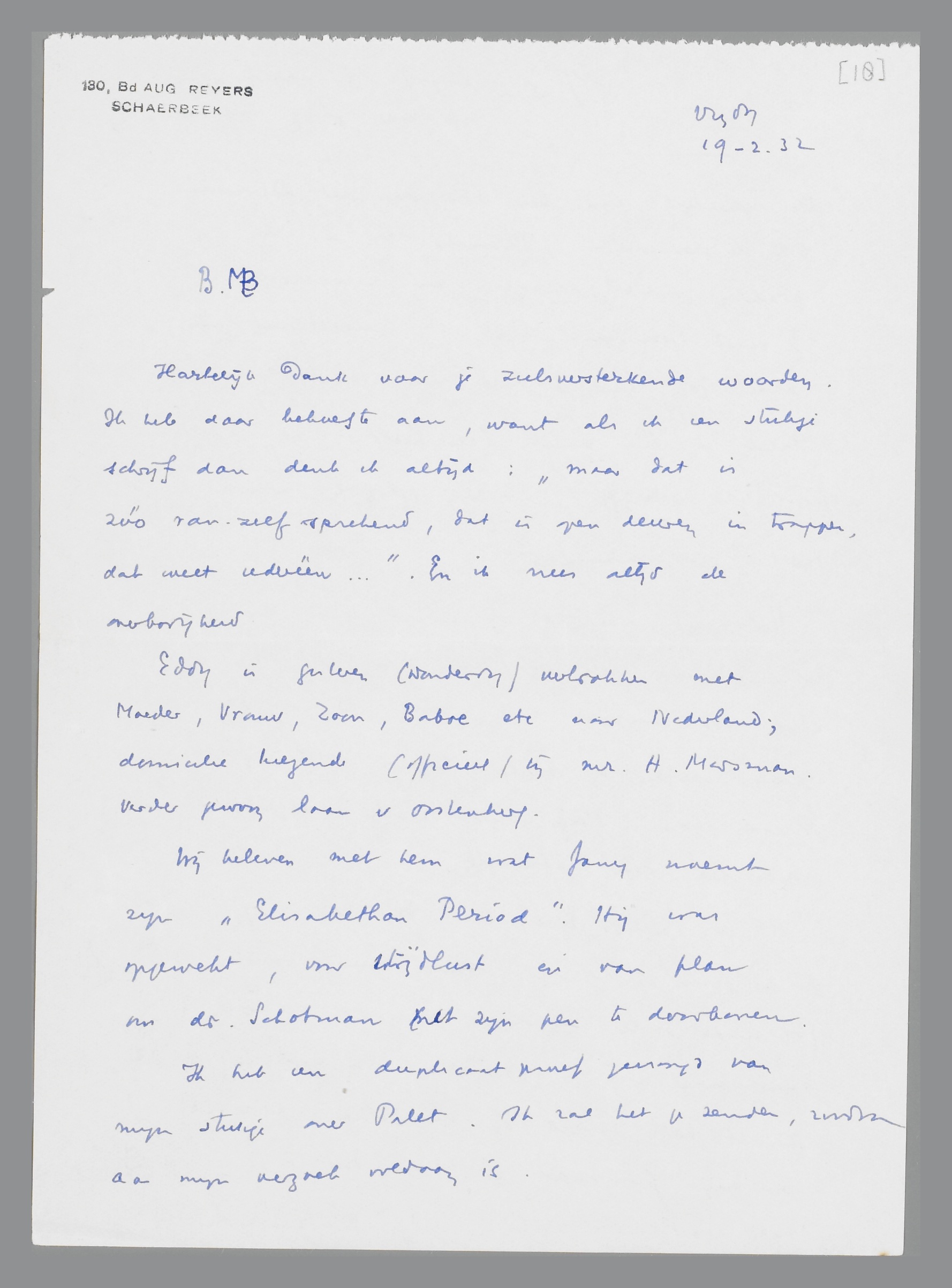 Wij beleven met hem wat Jany noemt zijn ‘Elisabethan Period’. Hij was opgewekt, van[?] strijdlust en van plan om dr. Schotman met zijn pen te doorboren.