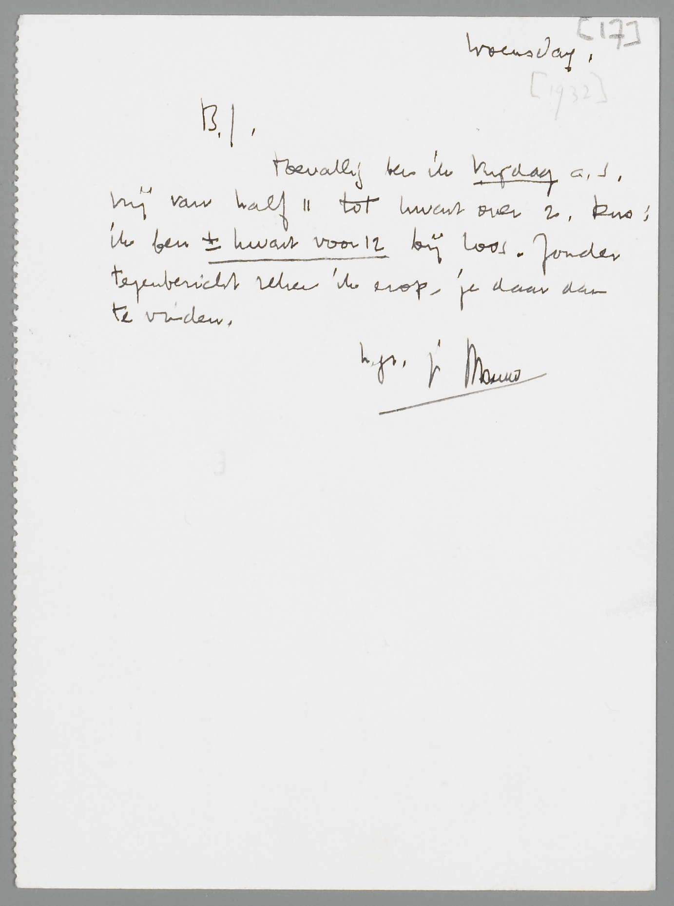 Toevallig ben ik Vrijdag a.s. vrij van half 11 tot kwart over 2. Dus: ik ben ± kwart voor 12 bij Loos. Zonder tegenbericht reken ik erop, je daar dan te vinden.